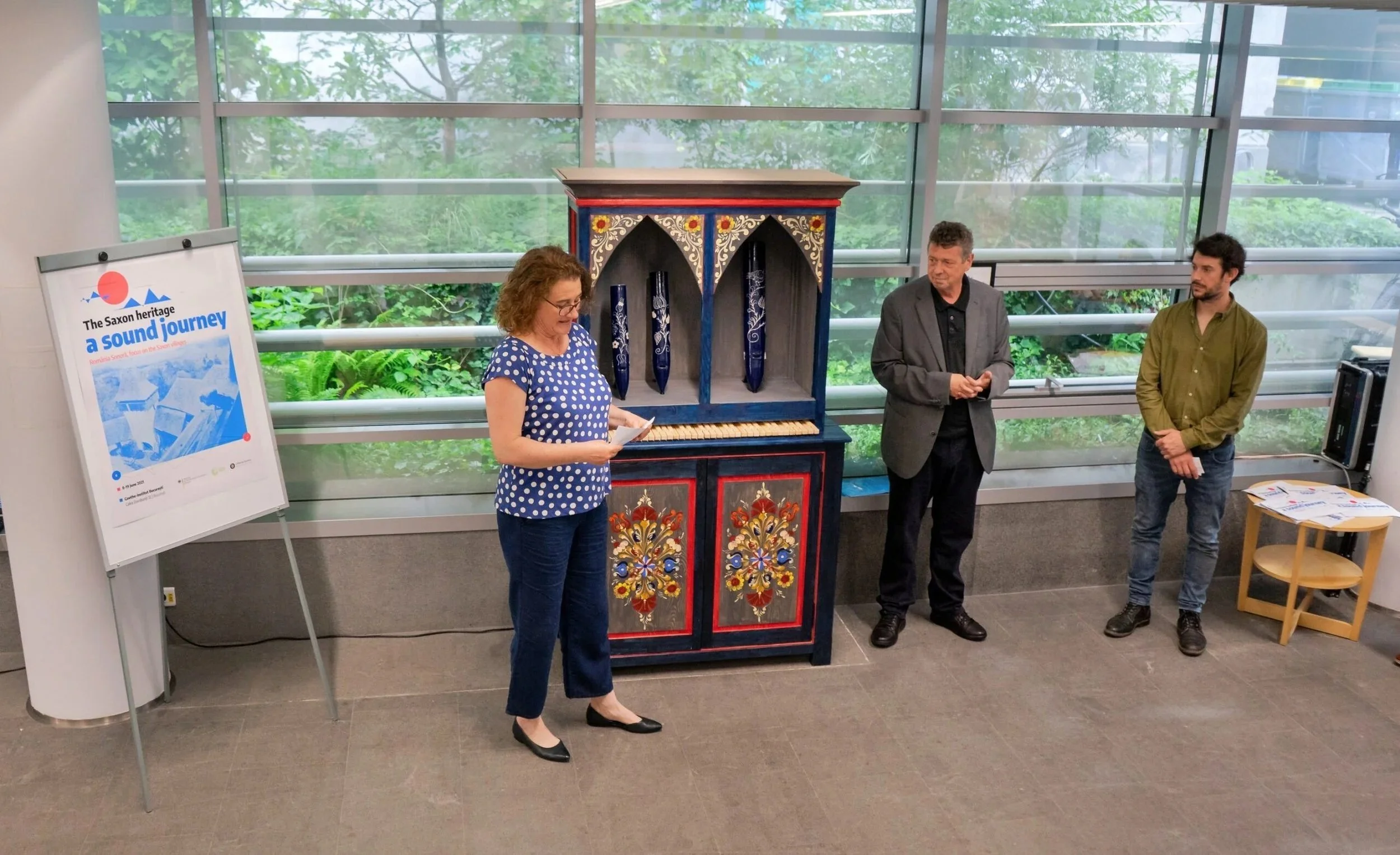 Esposta negli spazi interni del Goethe-Institut di Bucarest dall’8 al 19 giugno 2021, Prelude for Organ ha offerto al pubblico un’immersione multisensoriale nel paesaggio culturale della Transilvania sassone. Non si tratta di una semplice scultura, ma di un medium relazionale, in cui le forme dell’artigianato e della memoria acustica si combinano per dare voce a una storia comunitaria che rischia di perdersi, ma che attraverso la pratica artistica e la documentazione partecipata può ancora essere ascoltata, condivisa, trasmessa.
